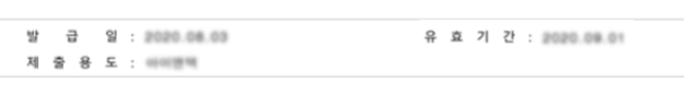 발급 시 선택(입력)하였던 제출용도와 발급일, 유효기간의 만료일이 최상단에 기재됩니다.